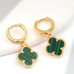 Vintage Alhambra Hoop Earrings, Gold Clasp